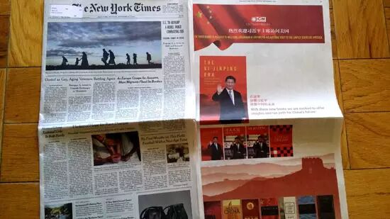 五星红旗高高飘扬,万里长城巍然耸立,《纽约时报》的这则广告以两个最具代表性的中国符号作为背景图案。“在这里,读懂习近平,读懂中国的未来”,一行字旁推介了美国时代出版公司出版的《习近平时代》《习大大说如何读经典》等英文图书。该公司是北京时代华语图书股份有限公司在美的全资子公司,为刊登广告花费10万美元。 关于为什么要斥巨资在美媒上做这样一个广告,朱大平说,他在美国从事出版“走出去”3年多来发现,美国一些主流媒体对中国的发展繁荣视而不见,对中国的政治、经济、社会和发展状况说三道四,“中国威胁”“中国崩溃”等杂音严重干扰和影响美国社会对中国的正确认知。 只有传播好中国声音,讲好中国故事,增加美国社会对中国的了解,才能减少偏见和误读。 他认为,“向世界推介一个国家,最重要的是推介国家领袖。这不仅是一种使命,也是一条捷径”。朱大平说,选择《纽约时报》是因为它的读者群是美国精英,而且该报也不时刊登对华负面报道。 朱大平告诉记者,广告刊登后影响非常大,书籍在美国亚马逊的排名大幅骤升。不断打来的电话中,不只是要买书的,还有美国的版权代理商希望合作,要把介绍中国领导人的书卖到全球。一些美国书评人也主动要求写书评。 这些都与习近平访美日益临近密切相关。《南华早报》9日援引多名消息人士的话说,习近平将通过9月22日在西雅图的一系列活动开启他对美国的首次国事访问。随后,他将前往华盛顿特区进行外交活动。此次访问将以他在联合国大会上的一场演讲结束。在微软和亚马逊等美国巨头总部所在的西雅图,习近平将进行这次国事访问中唯一一次与商界的互动。消息人士称,届时除了安排商界领袖与习近平会面之外,还将举行CEO圆桌论坛,主持人是美国前财长保尔森。